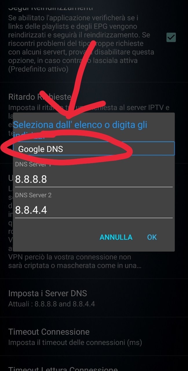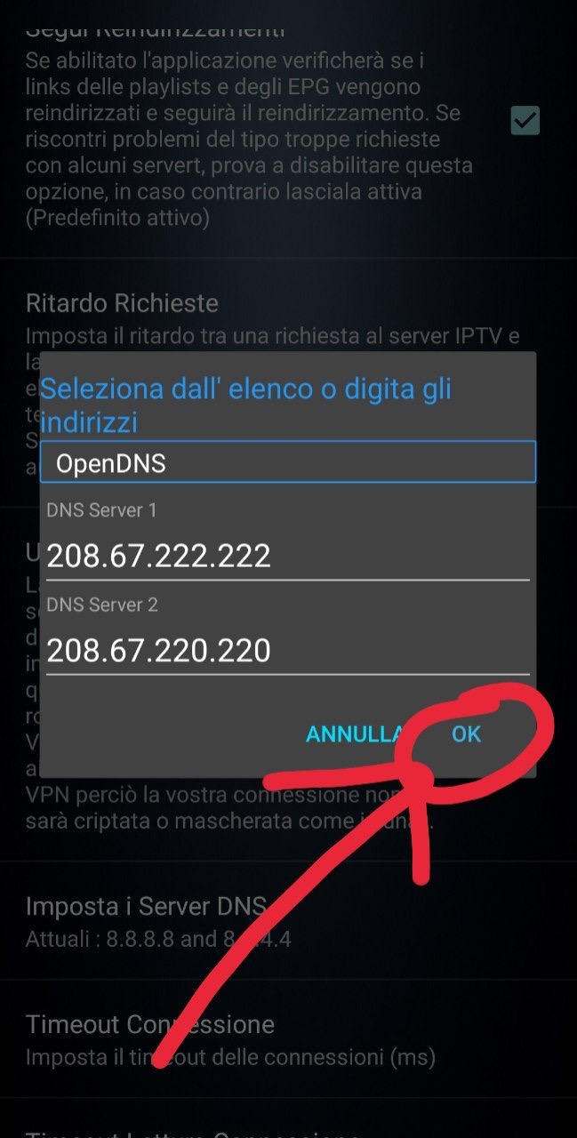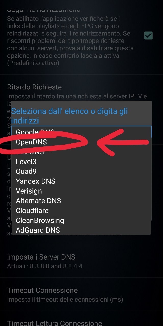 Ecco la guida per impostare correttamente i DNS di OPENdns sull'applicazione IPTVEXTREME.
